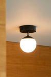 The mouth-blown glass distributes the warm light evenly throughout the room.
